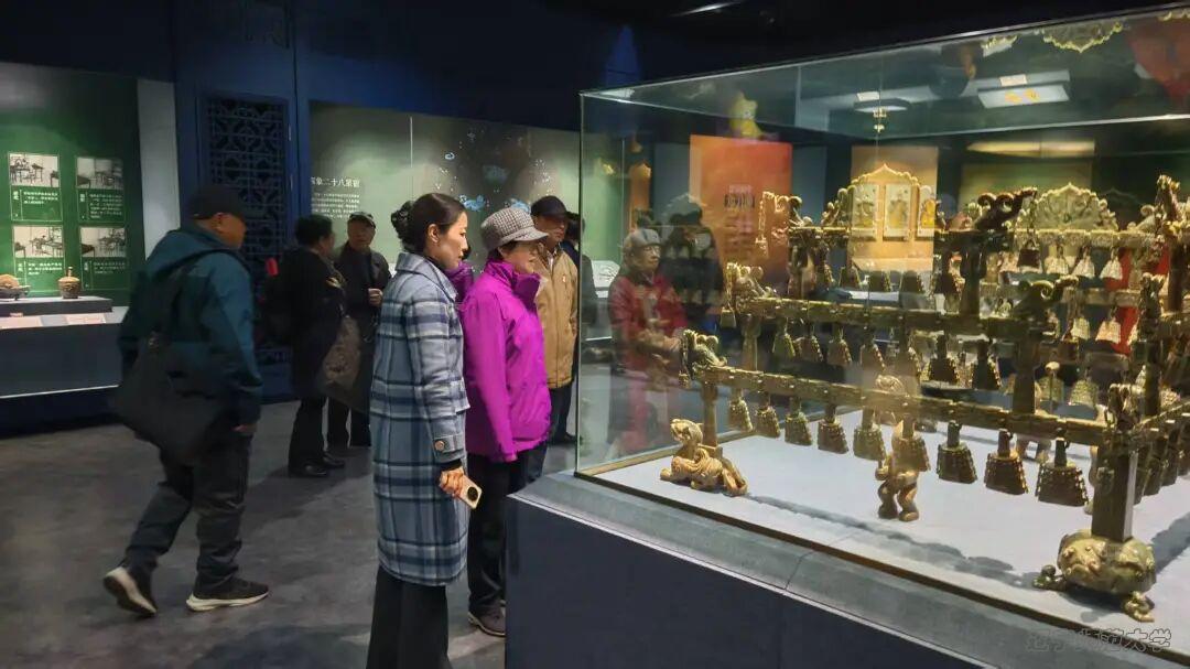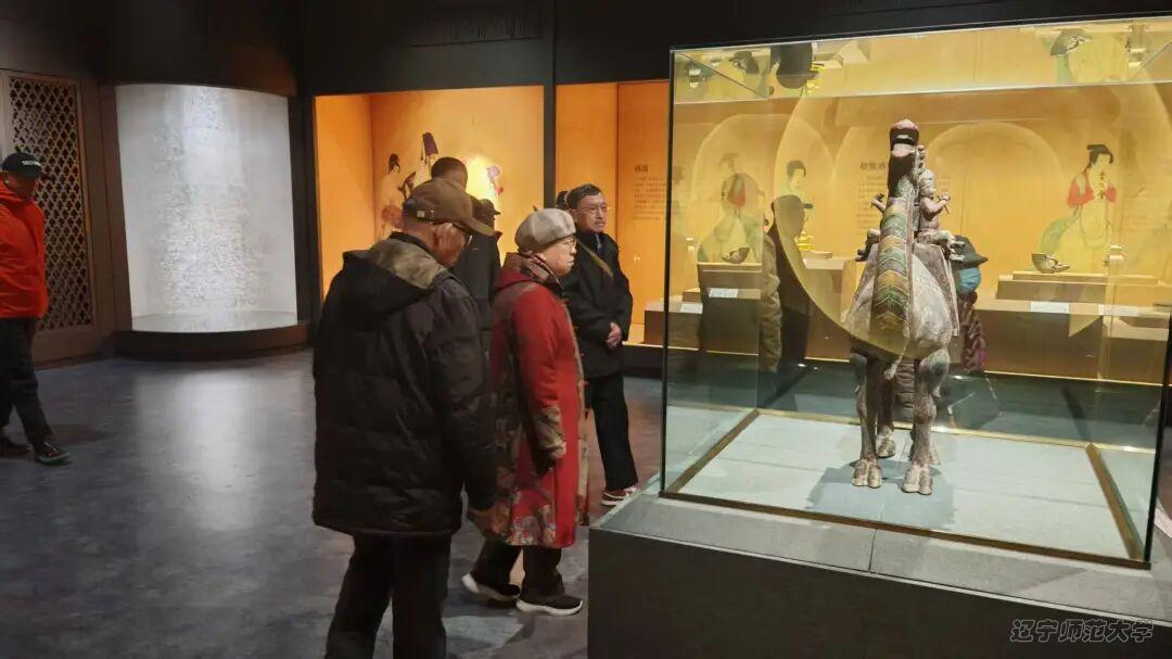 在华夏文化体验馆,老同志们循着历史脉络,探寻中华优秀传统文化的深厚底蕴,丰富的展陈内容让大家深刻体会到中华文脉的源远流长与红色文化的精神传承。尤其是“丝绸之路”展区,展区通过丰富的文物展品生动再现丝绸之路的历史风貌,展品中汇集了战国至明清时期的瓷器、金银器、佛教造像、玉器、书画等各类文物,“碧玉华光”“金银帝国”“法相金身”三大板块各具特色。镶宝夜明珠、错金银玉璧、鎏金龙凤盘等100多件汉唐时期的皇家御品尽显文物价值,全世界唯一一组采用捶揲、錾刻工艺的唐代银质骆驼乐俑,更以奏乐者着汉族衣冠、使用西域传入乐器的鲜活形态,展现出盛唐时期文化融合的盛景,生动诠释了中华文明兼容并蓄的特质。大家在探寻历史脉络中加深了对红色文化与中华文脉传承关系的理解,进一步增强了文化自信与历史使命感。