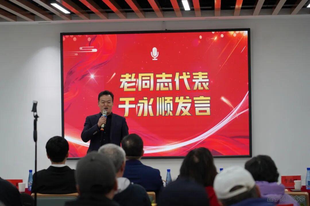 我校老教授协会副秘书长于永顺教授也代表老同志发表了感言,他向学校党委多年来对离退休老同志的关心、体贴、关注、支持表达了感谢,老同志们深切地感受到了我校的老同志工作越来越有温度;他还向全体支部委员的辛勤工作表达了敬意,为在场的所有老同志送上祝福,更为学校的高质量发展表达了诚挚的祝愿。
